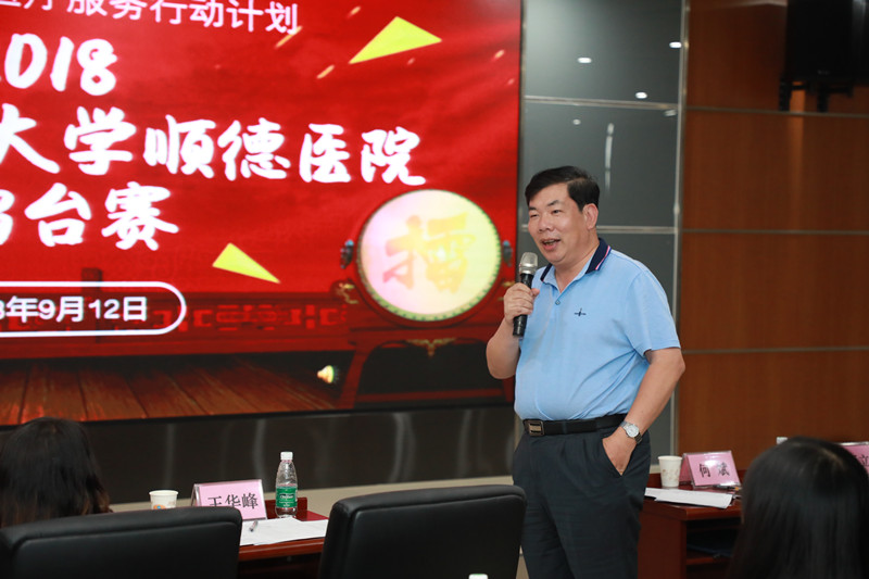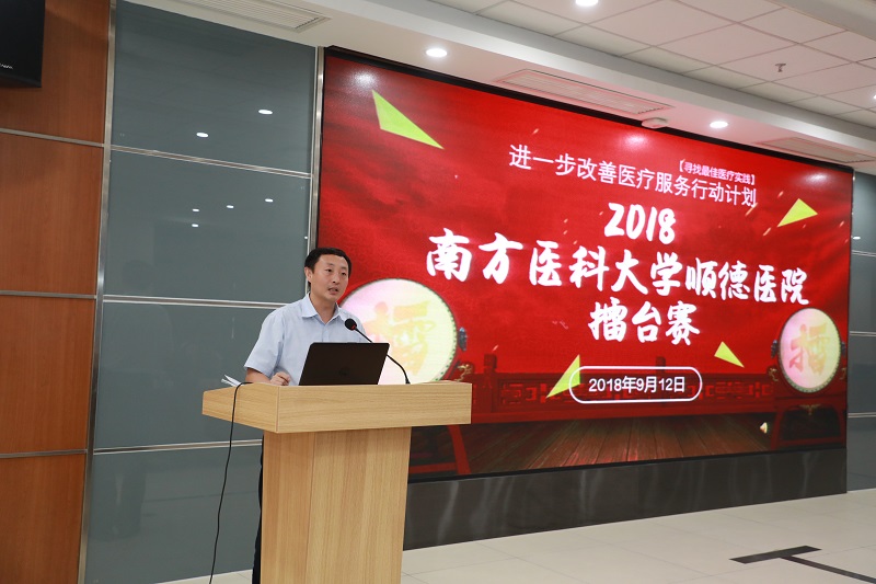 本次擂臺(tái)賽邀請(qǐng)了廣東省人民醫(yī)院黨委常委、副院長(zhǎng)何斌,南方醫(yī)科大學(xué)南方醫(yī)院醫(yī)務(wù)部主任李萬(wàn)立,佛山市護(hù)理學(xué)會(huì)副會(huì)長(zhǎng)黃少娟擔(dān)任專家評(píng)委。王華峰副院長(zhǎng)在致辭中表示,進(jìn)一步改善醫(yī)療服務(wù)行動(dòng)計(jì)劃是國(guó)家衛(wèi)健委實(shí)施健康中國(guó)的重要措施之一,為響應(yīng)號(hào)召,我院正制定進(jìn)一步鞏固改善服務(wù)的有效措施,將其固化為醫(yī)院工作制度,不斷落實(shí)深化,并以此為契機(jī),進(jìn)一步應(yīng)用新理念新技術(shù),創(chuàng)新醫(yī)療服務(wù)模式,努力使診療更加安全、就診更加便利、溝通更加有效、體驗(yàn)更加舒適,逐步形成區(qū)域協(xié)同、信息共享、服務(wù)一體、多學(xué)科聯(lián)合的新時(shí)代醫(yī)療服務(wù)格局。希望通過(guò)本次比賽,為各科室提供展示機(jī)會(huì)和交流平臺(tái),以賽促進(jìn),以賽促改,總結(jié)推廣我院改善醫(yī)療服務(wù)的有效做法及成果,推動(dòng)醫(yī)療服務(wù)高質(zhì)量發(fā)展。