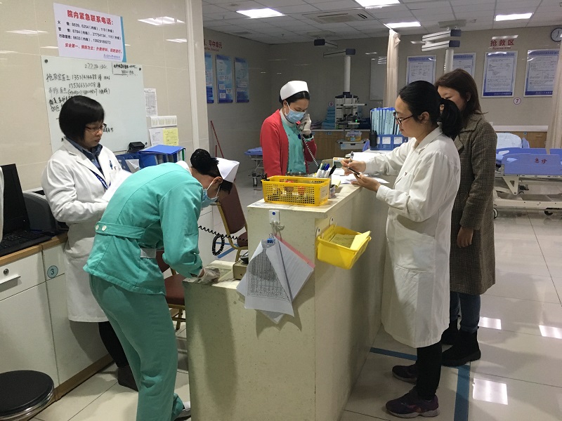 本次查房針對(duì)危急重癥急救綠色通道流程實(shí)施情況、節(jié)日期間值班人員的配備、搶救設(shè)備是否處于備用狀態(tài)、科內(nèi)危重病人的管理、各類(lèi)應(yīng)急預(yù)案、重大安全隱患等問(wèn)題進(jìn)行排查。檢查人員分成四組分別到各臨床科室進(jìn)行巡查,其中危急重癥急救綠色通道流程實(shí)施情況采取現(xiàn)場(chǎng)演練的形式,以患者的身份真實(shí)體驗(yàn)整個(gè)診治流程: