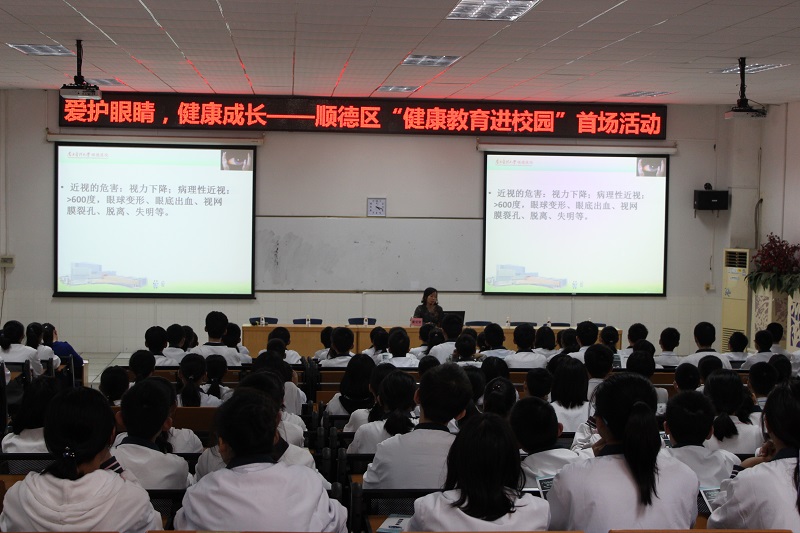 3月27日,各地市、各縣(市、區(qū))同步啟動(dòng)首場(chǎng)兒童青少年預(yù)防近視健康教育進(jìn)校園活動(dòng)。當(dāng)天下午,以“愛(ài)護(hù)眼睛 健康成長(zhǎng)”為主題的兒童青少年預(yù)防近視宣傳活動(dòng)啟動(dòng)儀式暨首場(chǎng)“健康教育進(jìn)校園”活動(dòng)在梁開(kāi)中學(xué)隆重啟動(dòng)。順德區(qū)衛(wèi)生健康局、教育局、順德社區(qū)衛(wèi)生服務(wù)中心等有關(guān)單位,南方醫(yī)科大學(xué)順德醫(yī)院眼科專(zhuān)家組成的醫(yī)療團(tuán)隊(duì)參加了活動(dòng)。