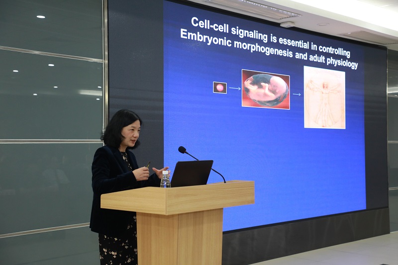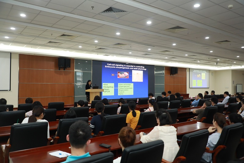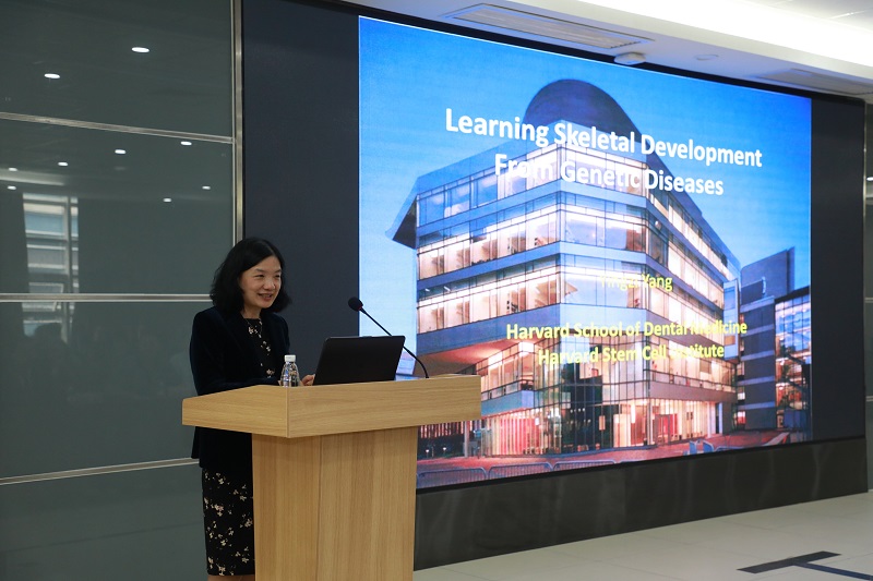 楊英姿教授首先為全院科研骨干、在讀研究生、規(guī)培醫(yī)生約150人作了《顱骨發(fā)育生物學(xué)與人類遺傳性疾病研究》的學(xué)術(shù)報告。楊教授從分子生物學(xué)層面深入介紹了Wnt和Hedgehog信號通路在多發(fā)性骨纖維化<MAS>和兒童進行性骨發(fā)育異常<POH>兩種罕見疾病中發(fā)揮的重要調(diào)控作用,進而引申出兩種信號通路在正常人體的骨骼發(fā)育中的生物學(xué)機理。楊教授還語重心長地勉勵在場的年輕學(xué)者對待科研工作要沉下心、俯下身,從機理上揭露疾病的本質(zhì),從而獲得高質(zhì)量的科研成果,造?;颊?。學(xué)術(shù)報告由我院王華峰副院長主持。