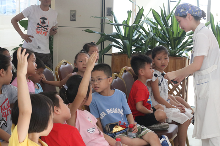 體驗(yàn)活動分為現(xiàn)場口腔科普講座、有獎問答、家長及幼兒免費(fèi)口腔檢查、幼兒口腔醫(yī)生角色體驗(yàn)四部分內(nèi)容。口腔疾病預(yù)防大使邱夢霞護(hù)士圍繞口腔保健、兒童牙病預(yù)防等內(nèi)容進(jìn)行生動有趣的講解,獲得觀眾熱烈的掌聲,孩子們在歡聲笑語中了解到牙齒的重要性,學(xué)到了簡單易行的牙齒保健方法。