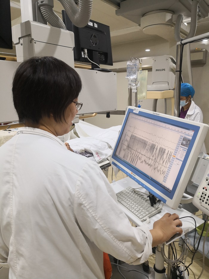7月22日上午,神經(jīng)外科腦血管介入專家陳建民醫(yī)生團(tuán)隊(duì)聯(lián)合神經(jīng)內(nèi)科電生理專家侯蘊(yùn)琦醫(yī)生團(tuán)隊(duì),為患者實(shí)施了腦電監(jiān)測(cè)下右側(cè)頸內(nèi)動(dòng)脈球囊閉塞試驗(yàn)。結(jié)果顯示,右側(cè)頸內(nèi)動(dòng)脈近端閉塞45分鐘,患者無不適,左側(cè)肢體活動(dòng)正常,腦電活動(dòng)完全正常。根據(jù)試驗(yàn)結(jié)果,神經(jīng)外科團(tuán)隊(duì)于當(dāng)天下午順利為患者實(shí)施動(dòng)脈瘤部分栓塞及載瘤動(dòng)脈近端閉塞術(shù)。術(shù)后,患者頭痛癥狀得到大部分緩解,視力無下降,四肢活動(dòng)好,術(shù)后3天就步行出院。患者及家屬對(duì)我院的團(tuán)隊(duì)合作及治療效果表示非常贊賞和滿意。