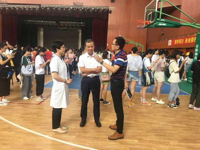 胡海源書記(前中)到體檢現(xiàn)場指導(dǎo)工作