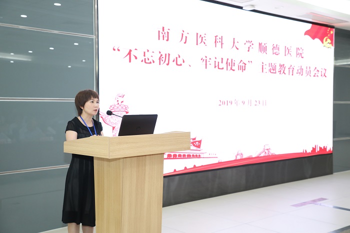 根據(jù)上級(jí)統(tǒng)一部署要求,9月23日下午,醫(yī)院召開(kāi)“不忘初心、牢記使命”主題教育動(dòng)員部署大會(huì),對(duì)醫(yī)院主題教育進(jìn)行全面動(dòng)員和工作部署。醫(yī)院黨委班子成員、黨支部書(shū)記、黨員中層干部、支部委員及部分支部黨務(wù)工作者等近200人出席會(huì)議。會(huì)議由沈潔院長(zhǎng)主持。
