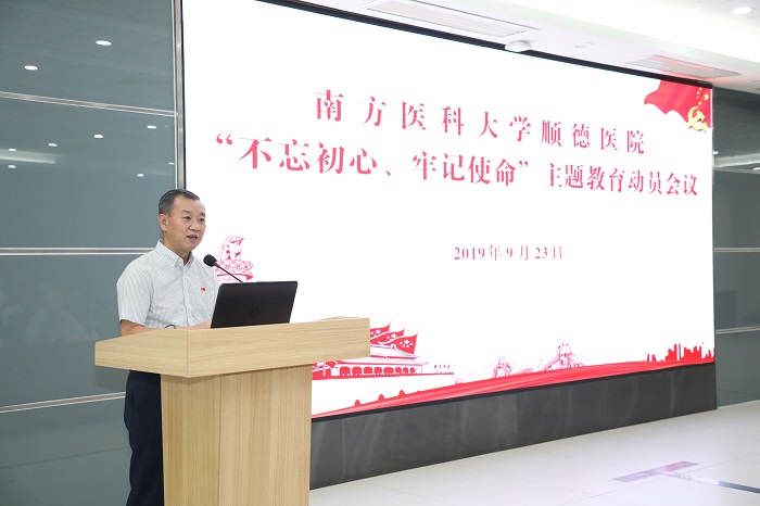隨后,胡海源同志作了動(dòng)員講話(huà)。胡海源同志指出,全院黨員干部要充分認(rèn)識(shí)開(kāi)展主題教育的重大意義,切實(shí)增強(qiáng)做好主題教育的責(zé)任感、緊迫感和使命感。開(kāi)展這次主題教育,是用習(xí)近平新時(shí)代中國(guó)特色社會(huì)主義思想武裝全黨的迫切需要,是推進(jìn)新時(shí)代黨的建設(shè)的迫切需要,是保持黨和人民群眾血肉聯(lián)系的迫切需要,是實(shí)現(xiàn)黨的十九大確定的目標(biāo)任務(wù)的迫切需要。要準(zhǔn)確把握上級(jí)各項(xiàng)部署要求,一體推進(jìn)“四項(xiàng)重點(diǎn)措施”,在理論學(xué)習(xí)要“深”,在調(diào)查研究要“實(shí)”,在檢視問(wèn)題要“真”,在整改落實(shí)要“嚴(yán)”。同時(shí)結(jié)合醫(yī)院和科室工作實(shí)際,緊緊圍繞加強(qiáng)患者安全管理專(zhuān)項(xiàng)行動(dòng)、“樹(shù)形象 立新風(fēng)”活動(dòng)、三甲復(fù)審、規(guī)培基地迎檢等重點(diǎn)工作,找準(zhǔn)開(kāi)展主題教育的著力點(diǎn),切實(shí)把開(kāi)展主題教育的成效轉(zhuǎn)化為引領(lǐng)推動(dòng)醫(yī)院和科室建設(shè)和發(fā)展的實(shí)際行動(dòng),以自我革命精神將主題教育全面推向深入。要加強(qiáng)組織領(lǐng)導(dǎo),堅(jiān)持統(tǒng)籌推進(jìn)、壓實(shí)工作責(zé)任、加強(qiáng)宣傳引導(dǎo),力戒形式主義,確保主題教育扎實(shí)推進(jìn)、取得實(shí)效。