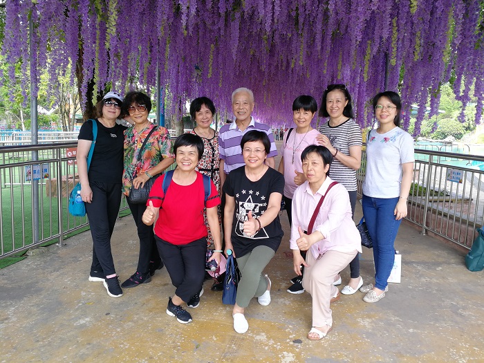 在環(huán)境優(yōu)美的高明盈香生態(tài)園,退休人員置身于美麗的花海,呼吸著新鮮的空氣,飽覽一路美景,他們個(gè)個(gè)精神飽滿,一邊暢敘各自的退休生活,一邊興致勃勃地拍照留念,歡聲笑語(yǔ)灑滿一路。
