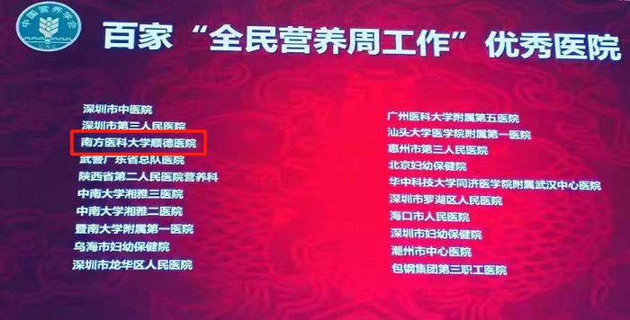 10月12日,2019年廣東省營養(yǎng)學(xué)會臨床營養(yǎng)專業(yè)委員學(xué)會年會在廣州召開。會上,我院因在第五屆全民營養(yǎng)周活動中表現(xiàn)優(yōu)異,榮獲2019全民營養(yǎng)周二等獎,并被中國營養(yǎng)學(xué)會表彰為“百家全民營養(yǎng)周工作優(yōu)秀醫(yī)院”。