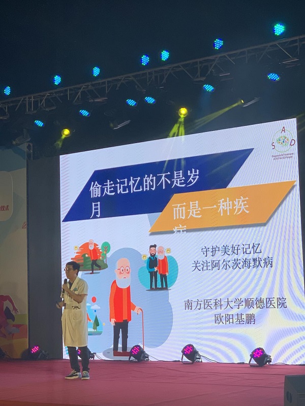 10月15日晚,由順德區(qū)衛(wèi)生健康局主辦的“創(chuàng)建廣東省健康促進(jìn)區(qū)系列宣傳”暨“敬老月”活動啟動儀式在容桂千禧廣場拉開帷幕。本次活動中,我院神經(jīng)內(nèi)科認(rèn)知與記憶障礙團(tuán)隊受邀負(fù)責(zé)“2019年順德區(qū)阿爾茨海默病預(yù)防與干預(yù)”知識宣教。