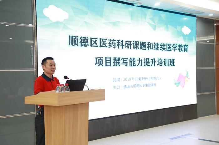 10月19日上午,由順德區(qū)衛(wèi)生健康局主辦,我院承辦的“順德區(qū)醫(yī)藥科研課題和繼教項(xiàng)目撰寫(xiě)能力培訓(xùn)班”在我院召開(kāi),來(lái)自全區(qū)各醫(yī)療單位的200多名學(xué)員參加了培訓(xùn)。區(qū)衛(wèi)健局醫(yī)政醫(yī)管科丁輝科長(zhǎng)、我院王華峰副院長(zhǎng)出席了培訓(xùn)班,培訓(xùn)班由科教科周小燕副主任主持。