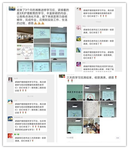 本次培訓(xùn)班由獲得省級(jí)教育護(hù)士任職資格證的老師們進(jìn)行為期三天的授課,側(cè)重點(diǎn)在于護(hù)理教育的系統(tǒng)化,主要從教育評(píng)估、計(jì)劃、實(shí)施、評(píng)價(jià)四個(gè)方面講解。培訓(xùn)班采取多樣化的教學(xué)方法,如講授、示范、演練和交流討論等,老師手把手向?qū)W員們展示翻轉(zhuǎn)課堂、案例分析、全程情景演練、PBL等新型的教學(xué)方法。課堂上,老師們使出渾身解數(shù),用心講解、循循善誘;學(xué)員們?nèi)橥度耄e極參與,各抒己見,課后,學(xué)員們紛紛表示感謝護(hù)理部提供此次學(xué)習(xí)平臺(tái),感謝老師們的精心備課,開拓了護(hù)理教學(xué)思維,收獲滿滿!