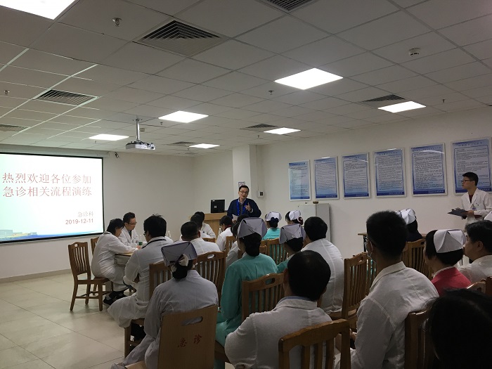 為提高急診科醫(yī)務(wù)人員對急救技能的熟練程度和應(yīng)急反應(yīng)能力,提高對危重病人的搶救成功率,進(jìn)一步優(yōu)化急診搶救流程, 12月11日下午,我院急診科開展了多項(xiàng)急救流程演練,根據(jù)演練預(yù)案對醫(yī)務(wù)人員進(jìn)行培訓(xùn)。
