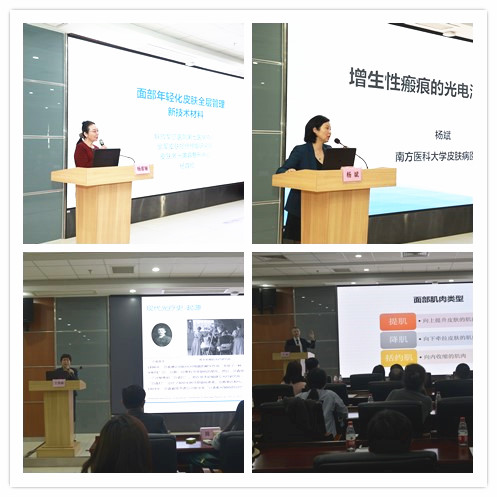 楊蓉婭教授首先為大家講授了“面部年輕化皮膚分層管理”;楊斌教授帶來(lái)了“增生性瘢痕的光電治療策略”;王秀麗教授講解了“紫外線治療共識(shí)解讀”;簡(jiǎn)丹教授講課的題目是“痤瘡的個(gè)體化治療與管理策略”;于波教授探討了“肉毒毒素在皮膚科的應(yīng)用”,給大家講解了面部解剖,展示了不同解剖部位注射的要點(diǎn)、可能出現(xiàn)的并發(fā)癥及其解決辦法;夏志寬教授講解了“黃褐斑的光電治療與思考”,用詳實(shí)的臨床病例闡述黃褐斑的發(fā)生機(jī)制及光電治療要點(diǎn);南方醫(yī)科大學(xué)皮膚病醫(yī)院的李慧忠、劉振峰、陳勇軍以及南方醫(yī)科大學(xué)順德醫(yī)院的湯紅峰教授分別以《點(diǎn)陣激光在皮膚科應(yīng)用及拓展》、《單極射頻在面部年輕化中的應(yīng)用》、《激光術(shù)后的組織損傷與術(shù)后處理策略》、《基層醫(yī)院如何開(kāi)展醫(yī)學(xué)美容相關(guān)醫(yī)教研工作》為主題,圍繞醫(yī)美新觀念、新技術(shù)作了精彩的學(xué)術(shù)講座,分享了先進(jìn)理念、技術(shù)與經(jīng)驗(yàn),與會(huì)人員表示受益匪淺。