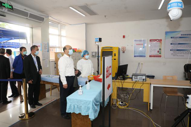 黎校長首先來到發(fā)熱門診、產(chǎn)科門診、急診、預檢分診通道等地視察,現(xiàn)場查看我院防控一線的診療秩序、流程設(shè)置、防控措施,并了解醫(yī)院全面開診后醫(yī)療工作的部署和落實。