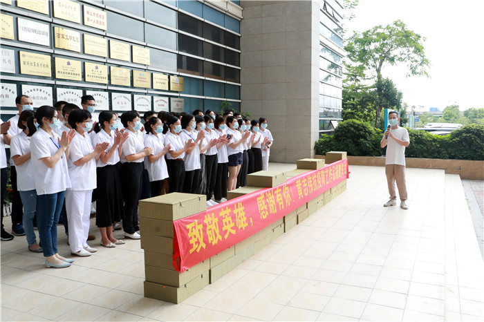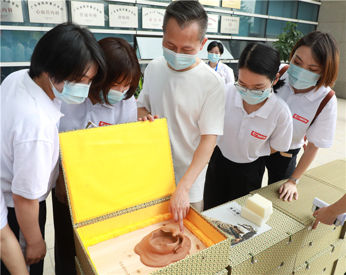 現(xiàn)場(chǎng),我院馳援湖北醫(yī)療隊(duì)隊(duì)員、急診病房梁妍琨主任作為代表接受了黃志偉的捐贈(zèng)。在馳援湖北期間,梁妍琨擔(dān)任武漢市第一醫(yī)院十二病區(qū)主任。接過(guò)這份寓意深遠(yuǎn)的陶藝作品,梁妍琨表示,作為醫(yī)護(hù)人員,守護(hù)病人是職責(zé)。在馳援湖北期間,她充分感受到社會(huì)各界對(duì)醫(yī)護(hù)人員的守護(hù)?!拔覀兾ㄒ豢梢曰貓?bào)的是,在職業(yè)生涯里,全力救治和幫助更多有需要的人。”