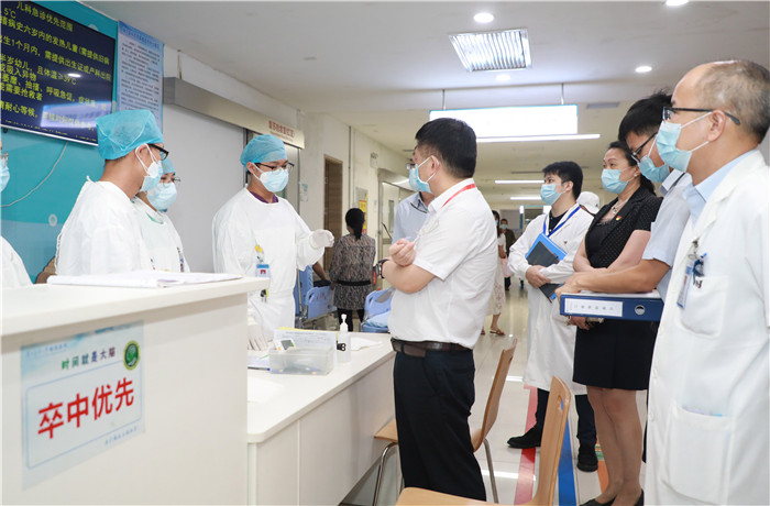 為貫徹國(guó)家衛(wèi)生健康委《醫(yī)院卒中中心建設(shè)和管理指導(dǎo)原則》文件精神,加快推動(dòng)我國(guó)卒中中心建設(shè)工作,2020年7月21日下午,國(guó)家衛(wèi)健委腦卒中防治工程委員會(huì)(下稱“腦防委”)高級(jí)卒中中心專家組一行七人蒞臨我院開(kāi)展現(xiàn)場(chǎng)檢查、培訓(xùn)和指導(dǎo)工作。本次專家組由河南省人民醫(yī)院腦血管病醫(yī)院李天曉院長(zhǎng)擔(dān)任組長(zhǎng),南方醫(yī)科大學(xué)南方醫(yī)院神經(jīng)重癥科潘速躍主任、鄭州市第一人民醫(yī)院卒中中心張曉曼主任、南方醫(yī)科大學(xué)南方醫(yī)院神經(jīng)外科馮文峰主任、中山大學(xué)孫逸仙紀(jì)念醫(yī)院介入科許林峰主任、海南省人民醫(yī)院神經(jīng)介入科張帆主任擔(dān)任組員,河南省人民醫(yī)院卒中中心賀迎坤博士擔(dān)任秘書(shū)。順德區(qū)衛(wèi)生健康局機(jī)關(guān)黨委梁少?gòu)?qiáng)副書(shū)記、醫(yī)政醫(yī)管科袁岳副科長(zhǎng),我院沈潔院長(zhǎng)、胡允兆副院長(zhǎng)、武大林醫(yī)療總監(jiān)及相關(guān)科室負(fù)責(zé)人陪同檢查。