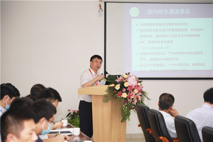 現(xiàn)場(chǎng)走訪后,進(jìn)入集中反饋培訓(xùn)環(huán)節(jié)。首先,沈潔院長(zhǎng)對(duì)我院高級(jí)卒中中心建設(shè)及工作開(kāi)展情況進(jìn)行了全面詳實(shí)的匯報(bào)。隨后,李天曉組長(zhǎng)作了“腦卒中工程防治工作與卒中中心建設(shè)”的專題介紹與培訓(xùn),詳細(xì)介紹了腦防委在腦卒中防治工作中作出的成就及卒中中心建設(shè)相關(guān)要求。會(huì)上,七位專家對(duì)現(xiàn)場(chǎng)走訪情況進(jìn)行了逐一反饋。專家組對(duì)我院高級(jí)卒中中心建設(shè)取得的成績(jī)給予了充分肯定的同時(shí),更多的是指出了檢查中發(fā)現(xiàn)的細(xì)節(jié)問(wèn)題與有待提高之處,并針對(duì)相關(guān)學(xué)科建設(shè)如何改進(jìn)等方面進(jìn)行專項(xiàng)培訓(xùn)和指導(dǎo),為醫(yī)院進(jìn)一步加強(qiáng)卒中中心建設(shè)提出了十分中肯而寶貴的意見(jiàn)、建議。