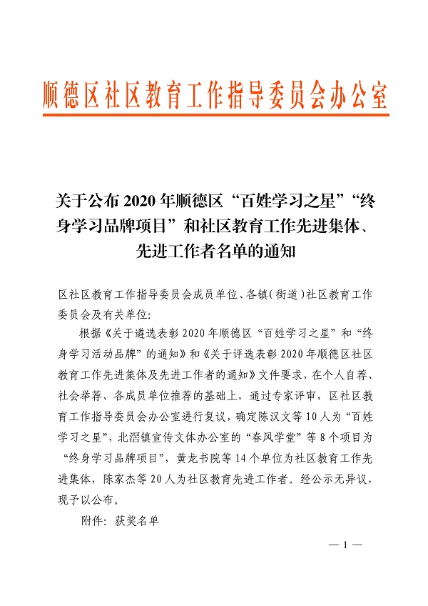 據(jù)了解,順德“百姓學(xué)習(xí)之星”評(píng)選是2020 年順德區(qū)全民終身學(xué)習(xí)活動(dòng)周、推動(dòng)全民終身學(xué)習(xí)的重要活動(dòng)之一,旨在進(jìn)一步激勵(lì)全民學(xué)習(xí)、終身學(xué)習(xí),弘揚(yáng)全民學(xué)習(xí)的精神風(fēng)貌,宣傳終身學(xué)習(xí)的先進(jìn)事跡,尋找感動(dòng)百姓的學(xué)習(xí)榜樣,推動(dòng)高水平學(xué)習(xí)型城市建設(shè)。