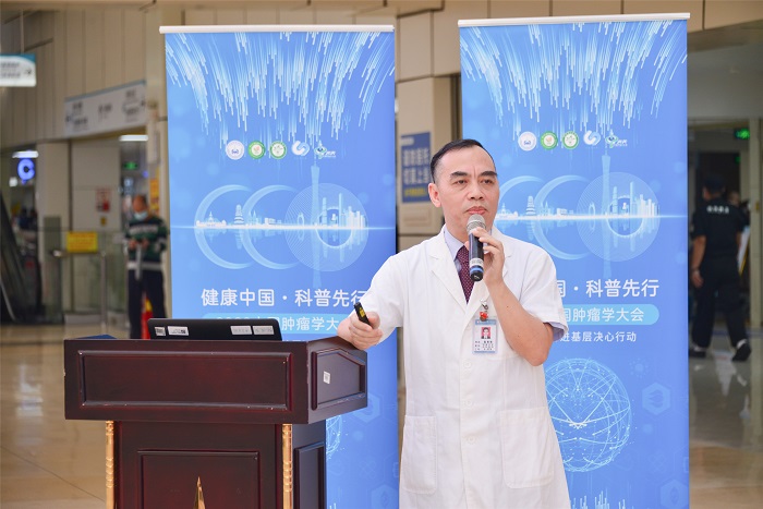 活動(dòng)開(kāi)始,我院胡允兆副院長(zhǎng)在致辭時(shí)表示,腫瘤是危及國(guó)民健康的頭號(hào)殺手之一,如何提高老百姓腫瘤學(xué)的科普知識(shí)和腫瘤防治意識(shí),提高腫瘤早發(fā)現(xiàn)、早治療的效果,是腫瘤醫(yī)療界致力解決的問(wèn)題。醫(yī)院腫瘤科在各屆負(fù)責(zé)人的帶領(lǐng)下,在醫(yī)療、科研、教學(xué)方面不斷探索進(jìn)取,為順德老百姓提供規(guī)范的腫瘤治療方案。中國(guó)腫瘤學(xué)大會(huì)作為國(guó)內(nèi)權(quán)威的腫瘤學(xué)會(huì)議,此次萬(wàn)人科普活動(dòng)(順德站)選擇了南方醫(yī)科大學(xué)順德醫(yī)院,是對(duì)我院腫瘤專業(yè)水平的一種認(rèn)可與鼓勵(lì),希望在各位廣東省腫瘤學(xué)專家及我院專家團(tuán)隊(duì)的共同合作下,本次科普義診活動(dòng)能夠順利開(kāi)展,并預(yù)祝2020年中國(guó)腫瘤學(xué)大會(huì)取得圓滿的成功。