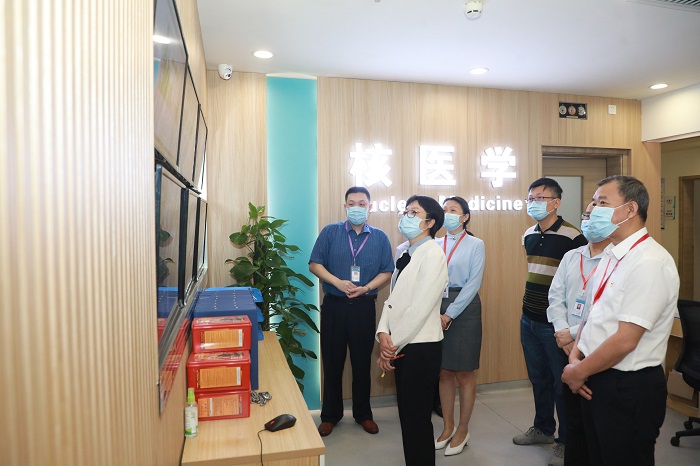 朱藝婷書記一行參觀走訪了醫(yī)院門診部、放射科、核醫(yī)學科、發(fā)熱門診、放射治療科等科室,了解醫(yī)院環(huán)境服務、設施設備等,認真查看了發(fā)熱門診室間布置、流程設置等疫情防控工作情況。我院胡海源書記、沈潔院長就醫(yī)院醫(yī)療業(yè)務發(fā)展、疫情防控、國家基本公共衛(wèi)生服務項目開展、基建設備配套及三甲評審后的發(fā)展規(guī)劃等方面做了簡要匯報。
