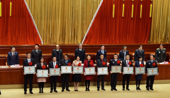沈潔院長(左六)代表醫(yī)院接受表彰