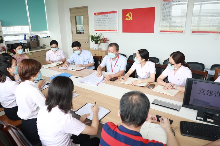 為推動黨建和醫(yī)療工作雙促進(jìn)雙提高,南醫(yī)大順德醫(yī)院積極推行“雙帶頭人”,科室主任、黨支部書記為科室黨支部戰(zhàn)斗堡壘作用的發(fā)揮提供了強(qiáng)有力的組織保障?!耙渣h建查房檢視學(xué)科建設(shè),是要進(jìn)一步明確黨的引領(lǐng)、指導(dǎo)作用,全面加強(qiáng)黨的領(lǐng)導(dǎo),突出黨領(lǐng)導(dǎo)一切,從而實現(xiàn)發(fā)現(xiàn)問題、分析問題、解決問題,推動醫(yī)院中心工作的目的?!焙T磿洷硎?,黨建查房,是在以往的業(yè)務(wù)查房、教學(xué)查房、院長行政查房等管理模式的基礎(chǔ)上,由黨委書記帶領(lǐng)黨群領(lǐng)導(dǎo)、職能部門負(fù)責(zé)人,分組采用聽取匯報、實地查看、聯(lián)系訪談等多種形式,創(chuàng)新開展起來的一項黨建督導(dǎo)形式。
