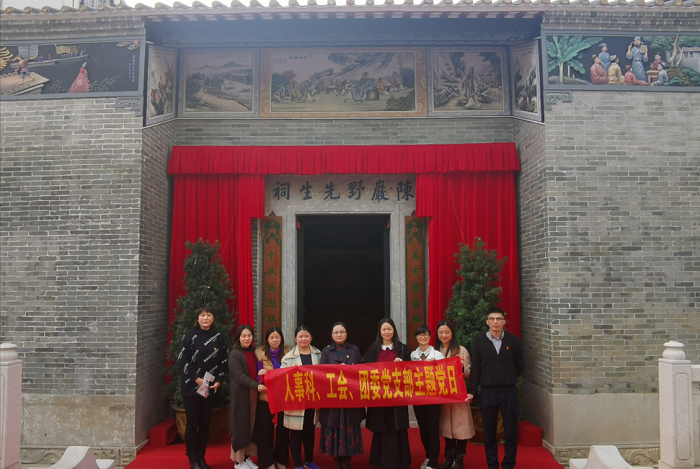 2020年12月24日上午,人事科、工會、團委黨支部在支部書記彭靜的帶領下,全體黨員共9人參觀了“新鮮出爐”的陳巖野先生祠,沿著古祠堂的壁畫、石碑、畫作、對聯(lián)、牌匾、天井等探尋,全體黨員逐步深入了解陳巖野先賢的事跡,激發(fā)了黨員同志“崇尚英雄、精忠報國”的愛國熱情。