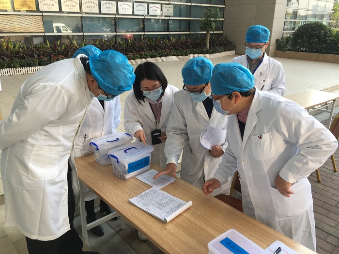 當(dāng)前,境外新冠肺炎疫情持續(xù)蔓延,國內(nèi)疫情多點(diǎn)散發(fā),疫情防控形勢(shì)十分嚴(yán)峻。為堅(jiān)決貫徹落實(shí)“外防輸入、內(nèi)防反彈”的疫情防控策略,全面扎實(shí)做好冬春季新冠疫情防控工作,1月19日上午,順德區(qū)衛(wèi)生健康局醫(yī)政科袁岳副科長率專家組一行5人對(duì)我院進(jìn)行新冠疫情防控節(jié)前監(jiān)督檢查。專家組采取實(shí)地查看、隨機(jī)提問、查閱資料等方式,檢查醫(yī)院落實(shí)“十項(xiàng)”感控措施不打折扣的相關(guān)工作。我院麥兆章副院長、感染管理部韓佳音主任、護(hù)理部房潔新副主任及相關(guān)職能部門人員陪同檢查。