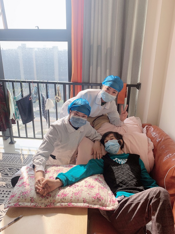 1月27日早上,與患者家屬取得聯(lián)系以后,腫瘤科劉興麗護(hù)長(zhǎng)、陳寶珠護(hù)士開始了上門服務(wù),很快見到了熟悉的面孔——周姨和她的家屬??吹阶o(hù)理團(tuán)隊(duì)來到家里,她們非常激動(dòng),連聲說:“互聯(lián)網(wǎng)約護(hù)士實(shí)在是太便民了,大大減少了患者的痛苦和家屬的負(fù)擔(dān)?!?/span>