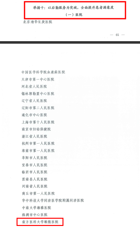 南方醫(yī)科大學(xué)順德醫(yī)院在“以病人為中心,推廣多學(xué)科診療模式”、“以后勤服務(wù)為突破,全面提升患者滿意度”等方面表現(xiàn)優(yōu)異,光榮上榜,獲評(píng)全國(guó)改善醫(yī)療服務(wù)先進(jìn)典型。