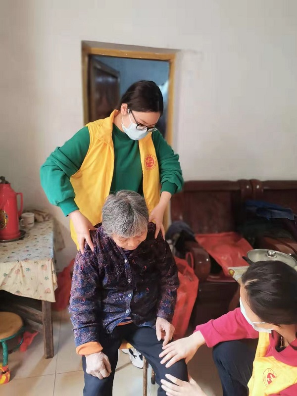 探訪期間,志愿者們有的主動幫忙整理環(huán)境,擺放年花、年桔,貼春聯(lián),有的手把手指導(dǎo)家居醫(yī)療護(hù)理知識,解答老人和家屬疑難,有的幫助聯(lián)系社區(qū)衛(wèi)生中心跟進(jìn)居家服務(wù),有的給老人心理疏導(dǎo),分工合作,發(fā)揮各自所長。