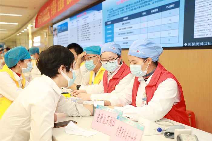 3月5日,來自醫(yī)院內(nèi)分泌與代謝科、營養(yǎng)科、消化內(nèi)科、神經(jīng)內(nèi)科、疼痛科、胃腸外科、腫瘤科、婦科、腎內(nèi)科、脊柱外科、健康管理中心、呼吸內(nèi)科、泌尿外科、放射治療科、口腔醫(yī)學(xué)中心、客戶服務(wù)部等10余個科室的醫(yī)護(hù)志愿者,在醫(yī)院門診大堂舉行“學(xué)雷鋒?送健康”健康咨詢及便民志愿服務(wù)。根據(jù)各自的專業(yè)特長,提供健康咨詢、量血壓、測血糖、身體成分分析等免費(fèi)服務(wù),協(xié)助患者和家屬進(jìn)行預(yù)約、綁定、自助機(jī)使用、檢驗影相結(jié)果打印等,耐心地接待每一位市民。