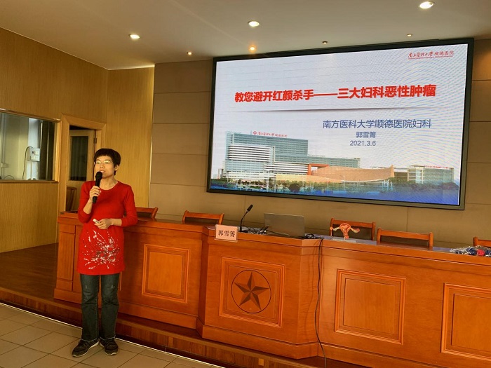 此次活動分為教師場和學生場。婦科郭雪箐副主任為老師們講解了婦科腫瘤早期篩查的重要性,甲狀腺乳腺血管外科曾智豪副主任對大家進行了女性乳房保健知識的宣教;兩位醫(yī)生還就日常生活中女性的常見疾病展開講解,幫助大家了解并掌握女性疾病早期預防、早期篩查和自我診斷的知識,強調(diào)了養(yǎng)成良好的生活習慣及定期體檢的重要性。