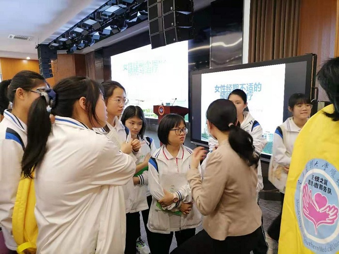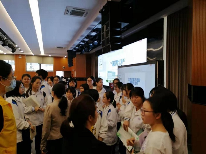 在學生專場,婦科葉桂娥、胡琴琴醫(yī)生就痛經(jīng)的防治、女性青春期生理與保健知識等展開講座,同學們學習熱情高漲,在自由提問環(huán)節(jié),就自己近階段遇到的青春期生理問題提出咨詢,醫(yī)生們都耐心地一一進行了解答。受現(xiàn)場氣氛感染,幾位高三的女同學興致昂揚地表示,自己以后也要報考醫(yī)學專業(yè),向醫(yī)生前輩們一樣,救死扶傷、甘于奉獻、大愛無疆。郭雪箐副主任鼓勵她們:“努力學習,奮發(fā)進取,未來我們等你!加油同學們!”