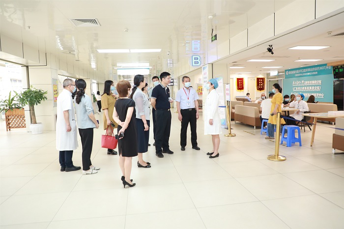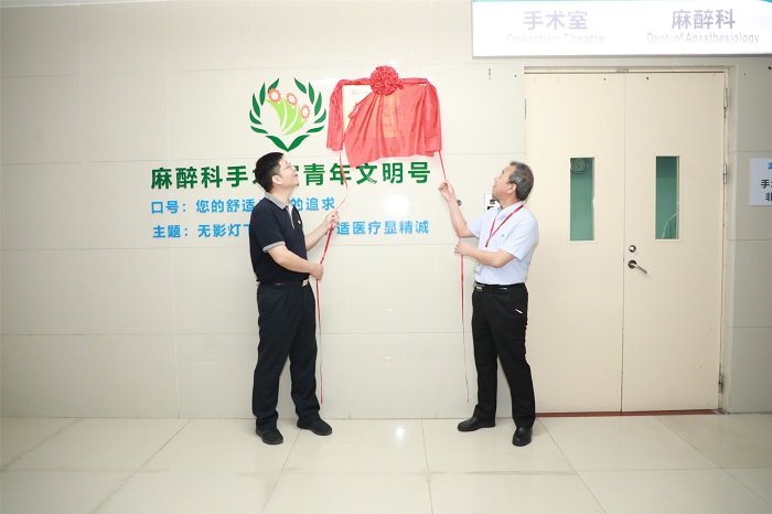 調(diào)研組首先走訪了醫(yī)院門診、核醫(yī)學(xué)科、口腔醫(yī)學(xué)中心等科室,了解學(xué)科建設(shè)、人才引育和未來規(guī)劃等情況,隨后前往“廣東省青年文明號”集體——麻醉科手術(shù)室,并為其揭牌。麻醉科手術(shù)室秉承“您的舒適,我們的追求”的創(chuàng)建主題,建立圍術(shù)期舒適化流程,主動拓寬舒適化服務(wù)范圍,給調(diào)研組留下了深刻印象。
