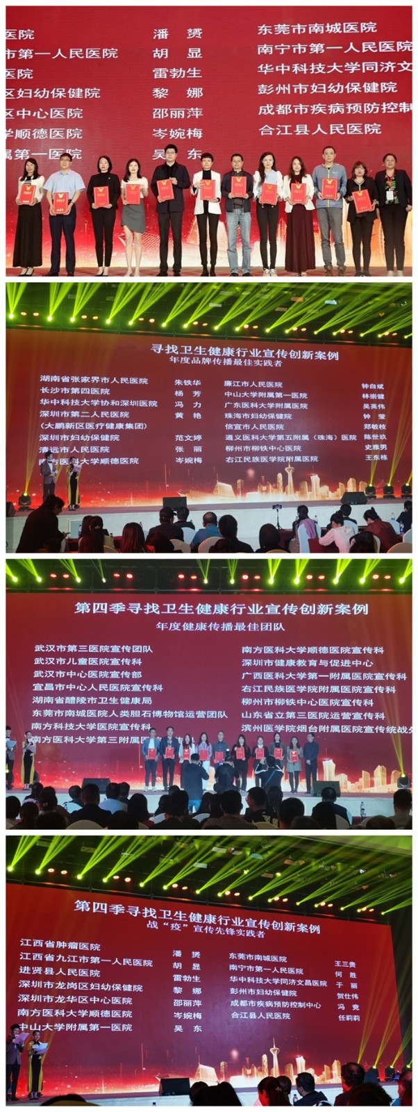 大會(huì)對(duì)2020年度尋找衛(wèi)生行業(yè)宣傳創(chuàng)新案例活動(dòng)獲獎(jiǎng)?wù)哌M(jìn)行表彰。南方醫(yī)科大學(xué)順德醫(yī)院榮獲4項(xiàng)全國(guó)“年度品牌活動(dòng)最佳案例”,宣傳科榮獲“年度健康傳播最佳團(tuán)隊(duì)”,宣傳科副主任岑婉梅榮獲“年度品牌傳播‘疫’線宣傳先鋒實(shí)踐者”、“年度品牌傳播最佳實(shí)踐者”等7項(xiàng)大獎(jiǎng)。