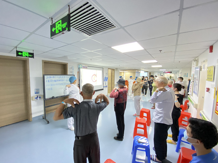 醫(yī)護(hù)人員帶領(lǐng)大家一起做頭頸部功能鍛煉操