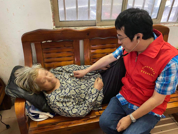 梁勇前副主任為林婆婆送上慰問品和科室的愛心款,并進(jìn)行身體檢查