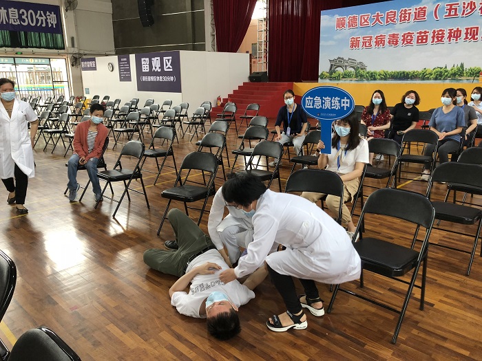 在接種點(diǎn)現(xiàn)場,醫(yī)院多次組織實(shí)地應(yīng)急演練,力求有效預(yù)防、及時(shí)控制和處置疫苗接種過程突發(fā)事件,推動(dòng)疫苗接種工作的平穩(wěn)、有序、規(guī)范實(shí)施。