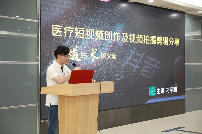 活動(dòng)邀請(qǐng)廣東省科普專家?guī)煳瘑T、全國(guó)科普創(chuàng)作達(dá)人刁宇鵬老師授課。他以《醫(yī)療短視頻創(chuàng)作及視頻拍攝剪輯分享——道與術(shù)的交流》為題,從短視頻創(chuàng)作理念和短視頻拍剪技巧兩大維度,分享如何打造“爆款”作品、如何選擇合適的展現(xiàn)平臺(tái)、如何運(yùn)用多種形式傳播健康知識(shí)等,并進(jìn)行現(xiàn)場(chǎng)實(shí)戰(zhàn)教學(xué)。刁宇鵬表示,健康傳播就是打造一個(gè)溝通平臺(tái),使醫(yī)院、醫(yī)務(wù)人員、社區(qū)居民、社會(huì)各界在平臺(tái)上良性互動(dòng)、互相促進(jìn),最終實(shí)現(xiàn)患者和居民健康水平的提升。