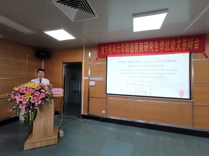南方醫(yī)科大學(xué)珠江醫(yī)院溫志波教授擔(dān)任答辯會主席,廣東省婦幼保健院江魁明教授、中山大學(xué)附屬第七醫(yī)院劉慶余教授以及我院相關(guān)科室負責(zé)人擔(dān)任答辯評審委員。李曉虹就《基于MRI影像組學(xué)的乳腺癌遠處轉(zhuǎn)移風(fēng)險評估模型構(gòu)建與驗證》,劉子蔚就《釓塞酸二鈉增強MRI T1mapping 評估及預(yù)測肝細胞癌Ki-67表達的應(yīng)用價值 》進行了精彩答辯。最后,答辯委員會一致同意通過2位申請人的研究生學(xué)位論文答辯,并建議授予碩士學(xué)位。