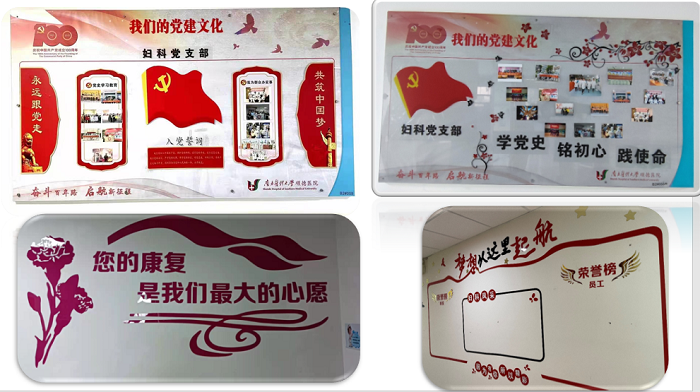 經(jīng)過這一個多月來的頭腦風(fēng)暴,婦科青年文明號定下了科室的創(chuàng)號文化。豐富了院內(nèi)環(huán)境氛圍、美化了黨建宣傳欄、設(shè)計(jì)了溫馨的標(biāo)語墻貼、購置了便民服務(wù)箱等,并制作各種提示標(biāo)簽、個人著裝相應(yīng)的號徽、文化衫等。