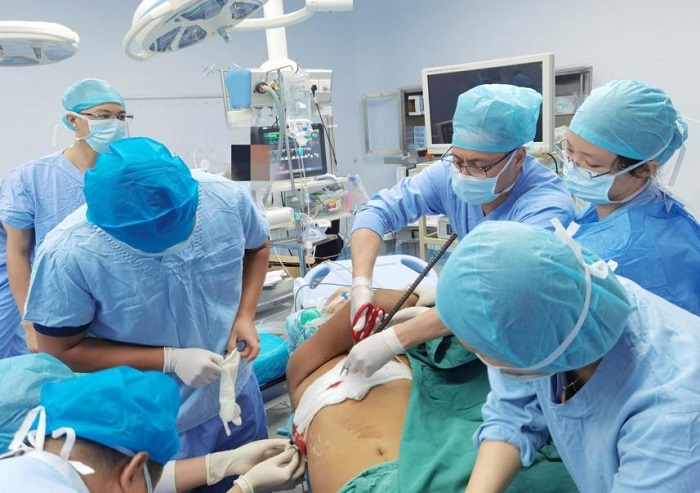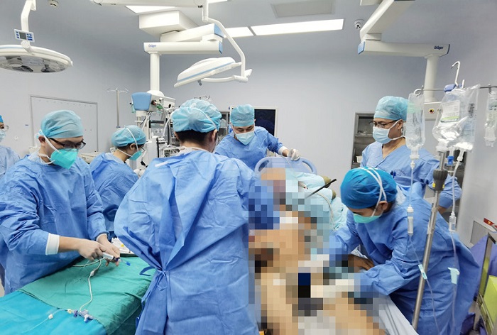 此刻,麻醉科醫(yī)生沒有絲毫懈怠,經(jīng)過科室主任統(tǒng)籌指揮,利用科室可視技術(shù),加上各麻醉醫(yī)生純熟的麻醉操作,在監(jiān)護(hù)儀顯示平穩(wěn)的生命體征下,快速及順利完成氣道及動(dòng)靜脈通道的建立。