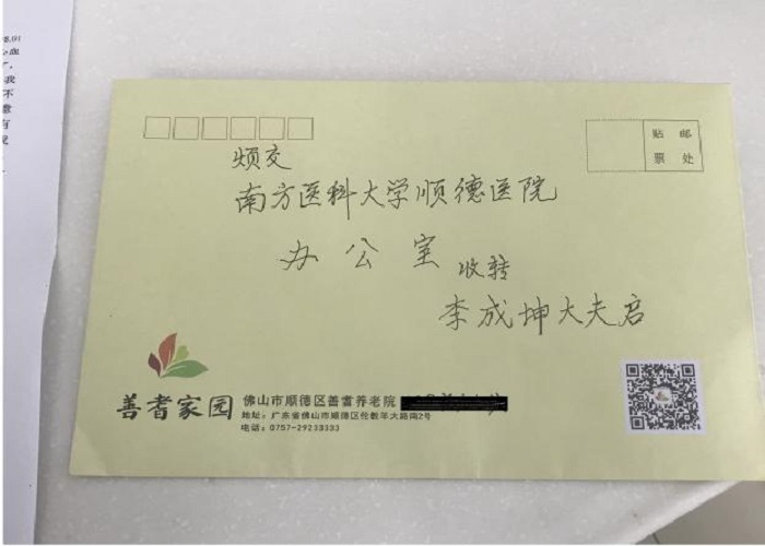 近日,我院中醫(yī)科李成坤醫(yī)生收到一面寫著“藥到春回,德藝雙馨”的錦旗和一封信,原來這是一位找李醫(yī)生看病近30年的“老病號”楊伯托養(yǎng)老院的工作人員輾轉(zhuǎn)送到的。