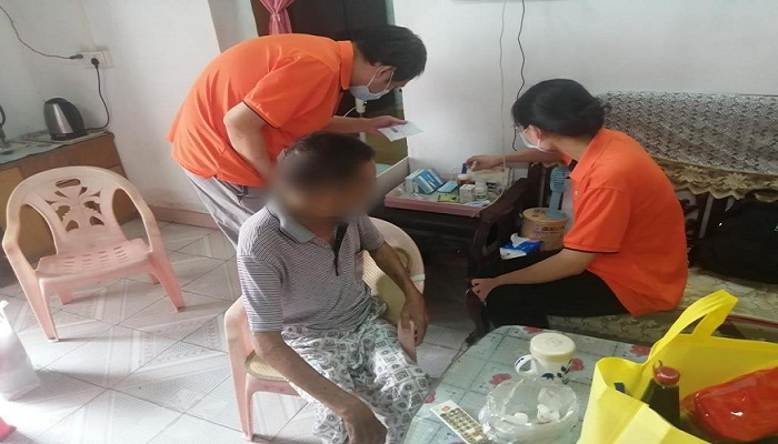 探訪中印象最深的是一位69歲的獨(dú)居麥姨(化名),麥姨左眼失明,右眼的視力可是“千里眼”??吹轿覀冞M(jìn)來,臉上馬上露出笑臉,站起身來招呼我們。與麥姨的交談中能夠感受到老人家承受著痛失親人的感情傷痛以及孤獨(dú),但她依舊保持樂觀。大家陪麥姨嘮嘮家常,把愛心物資送給老人,麥姨不停地說著:“現(xiàn)在社會(huì)好??!”大家相視一笑,說道:“中國共產(chǎn)黨領(lǐng)導(dǎo)得好??!”