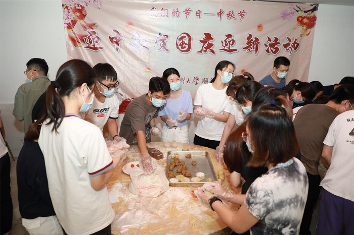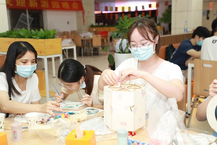 本次游園晚會(huì)共設(shè)有普通月餅、冰皮月餅、燈籠、團(tuán)扇的制作以及燈謎競(jìng)猜。晚會(huì)邀請(qǐng)了專業(yè)制餅師傅詳細(xì)講述月餅制作的注意事項(xiàng),并向大家示范了揉面團(tuán)、包餡、壓模成型等制作方法,接著大家按照老師說的步驟精心制作,互相交流各自的搟皮、放餡、揉、團(tuán)、捏、壓、刻等制作方法和經(jīng)驗(yàn),整個(gè)活動(dòng)現(xiàn)場(chǎng)歡聲笑語。