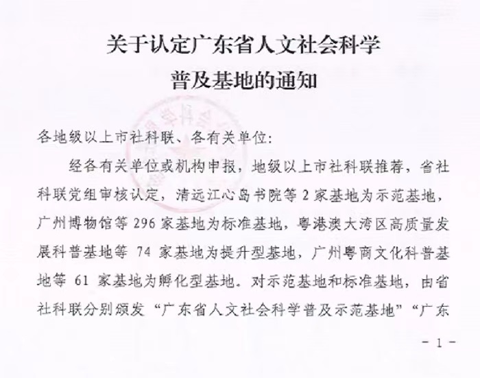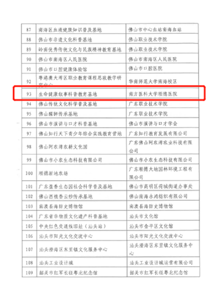 日前,廣東省社會科學界聯(lián)合會發(fā)布文件,南方醫(yī)科大學順德醫(yī)院生命健康敘事分享中心和廣州博物館一并被評為廣東省人文社會科學普及標準基地——生命健康敘事科普教育基地!