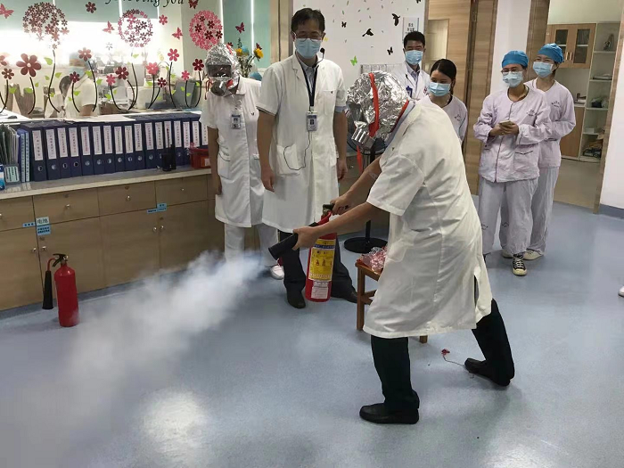 科室人員積極響應,反復演練多次,通過巡班護士發(fā)現(xiàn)檢查2室發(fā)生火災后,大聲呼喚附近同事,并馬上通知科室主任、大力按壓手報,同時提起滅火筒滅火;李志輝主任聞訊確認火情后,按照既定的程序,迅速指揮各人分頭報警滅火、分派濕毛巾,向主管院領導電話報告;疏散組醫(yī)護人員快速協(xié)助患者就近離開火警現(xiàn)場;當班人員按照操作規(guī)程迅速對初起火苗進行有效撲滅。演練中,醫(yī)生、護士、技術員等各個崗位緊密配合、各個環(huán)節(jié)協(xié)作有條不紊,做到了快速、準確、有效的消防安全疏散。