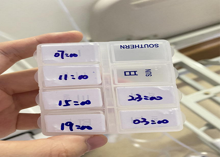 重癥肌無(wú)力患者需要定時(shí)服用“溴吡的斯明”控制病情,否則可能導(dǎo)致某一時(shí)間段肢體乏力甚至呼吸乏力。為了防止他們忘記服藥或者過(guò)時(shí)服藥,除了加強(qiáng)藥物重要性的宣教外,胸外科醫(yī)務(wù)人員還特意購(gòu)置了藥盒,把藥品分好類(lèi),標(biāo)上服藥時(shí)間,讓患者及其家屬調(diào)好提醒服藥的鬧鐘。
