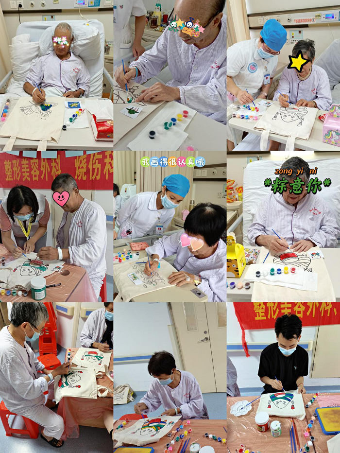 端午節(jié)前夕,整形美容外科、燒傷科和醫(yī)務(wù)社工一起為住院患者和陪護舉辦了一場別開生面的“健康端午,袋袋相傳”的端午節(jié)慶?;顒印?/span>