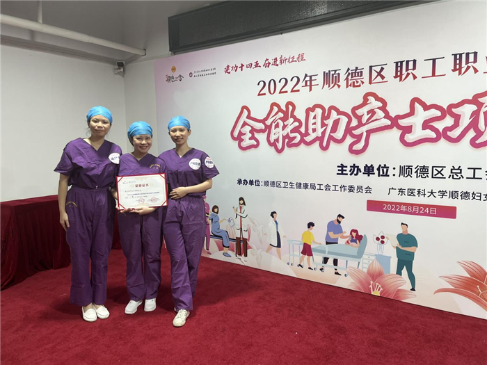 為進一步強化我區(qū)助產(chǎn)士積極落實助產(chǎn)技術(shù)臨床操作技,提高順德區(qū)助產(chǎn)技能質(zhì)量,促進自然分娩,有效控制剖宮產(chǎn)率,促進母嬰安康,提高人口素質(zhì),8月24日,順德區(qū)衛(wèi)生健康局工會工作委員會主辦了2022年職工職業(yè)技能大賽全能助產(chǎn)士項目競賽,由我院新兒科醫(yī)生邵詠潔、產(chǎn)科醫(yī)生張瑩珊、產(chǎn)科助產(chǎn)士楊靜恬、新兒科護士王亞麗組成的團隊在競賽中過關(guān)斬將,榮獲團體一等獎。